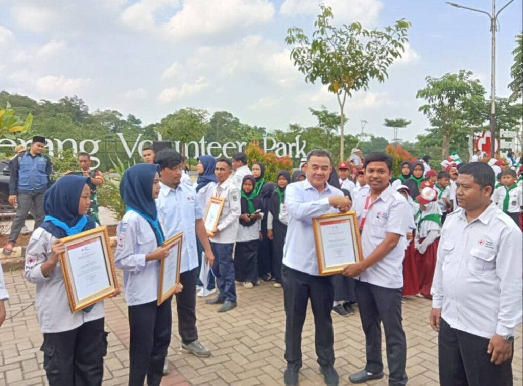 Penghargaan tersebut diserahkan dalam acara puncak peringatan yang digelar di Tangerang Volunteer Park, Kecamatan Solear, pada Minggu (28/9/2025).
